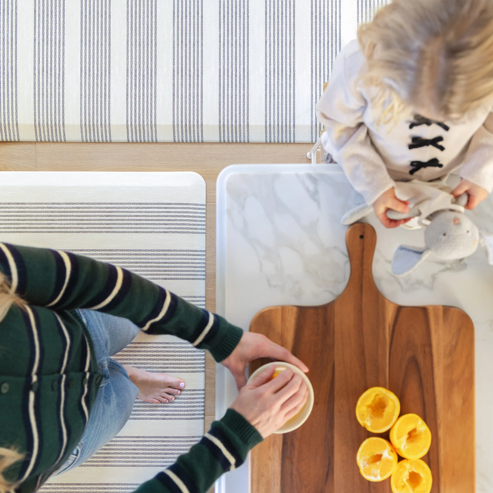 With a cream base and charcoal stripes, the Abbott standing mat brings quiet order to the spaces you stand the most. A minimal striped design nods to clean tailoring and timeless interiors while our ultra-plush, ergonomic foam cushions every step and wipes clean in a breeze. Designed to support you through long hours in the kitchen, office, or wherever you stand most.