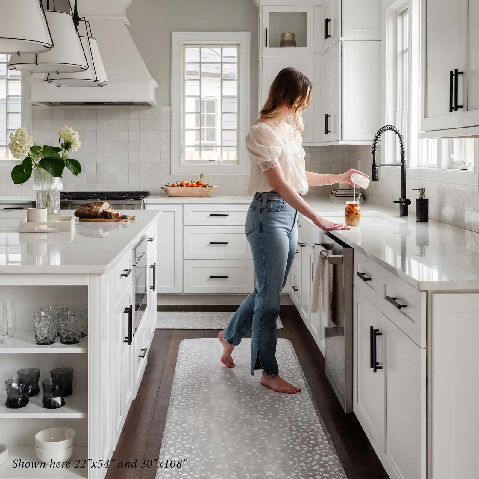 Our best-selling nature inspired print, now available as a standing mat. With its hand-painted scattered spots, our standing mat in Fawn's whimsical design is sure to bring a cozy, charming feeling to any room. This anti-fatigue mat is crafted with supportive ergonomic foam that contours to your feet, so you can enjoy comfort and wipe-clean peace of mind in all of the places you stand most.