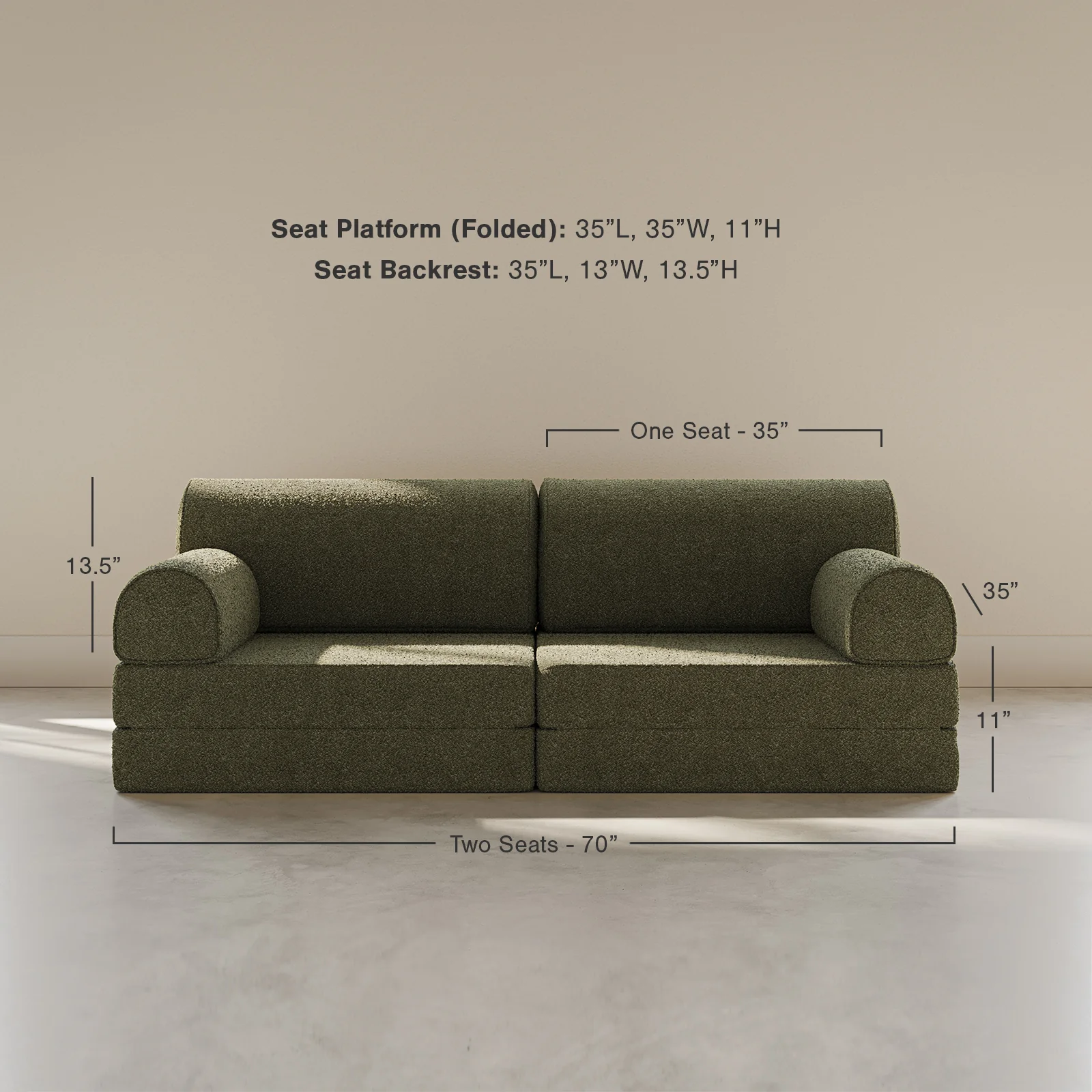 The Seat is the heart of your new modular couch. Soft yet sturdy foam supports hours of play, lounging, and imaginative fun. The Seat includes one foldable base & one backrest, each with a removable and machine-washable fabric cover. The base layer unfolds to create a flat surface, perfect for lounging or turning into a fort. Ideal for playrooms, living rooms, or anywhere your family gathers. Add a Waterproof Cover for added protection.