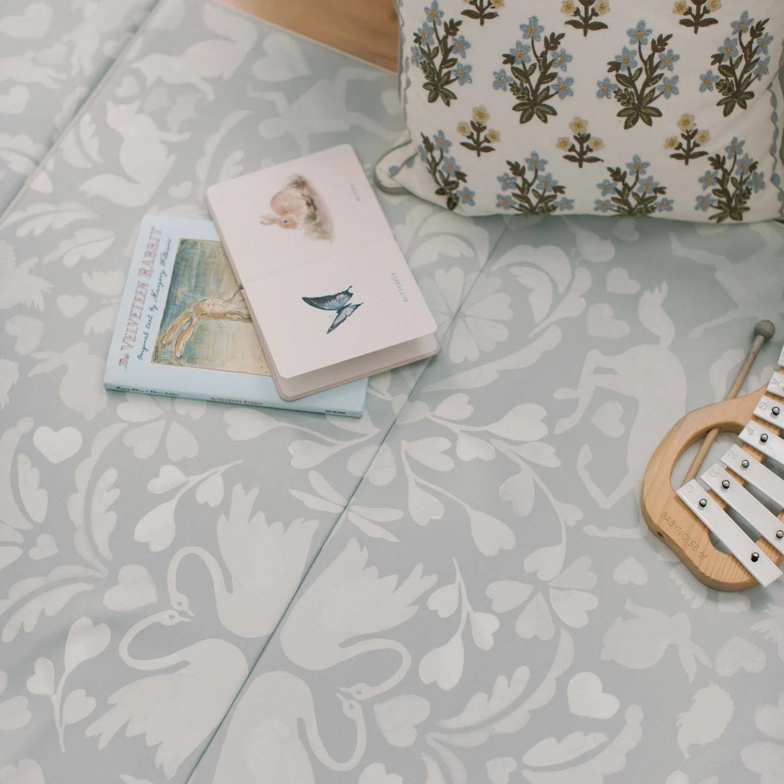 A tumbling mat as playful and lighthearted as your little one. Hand-illustrated in New York, this storybook-inspired motif was designed to let little imaginations run wild. All of our tumbling mats are cushioned with a generous layer of memory foam to soften and support their every move. Portable, wipeable and store-able for simple stress free play, inside or out. Safe for all ages.